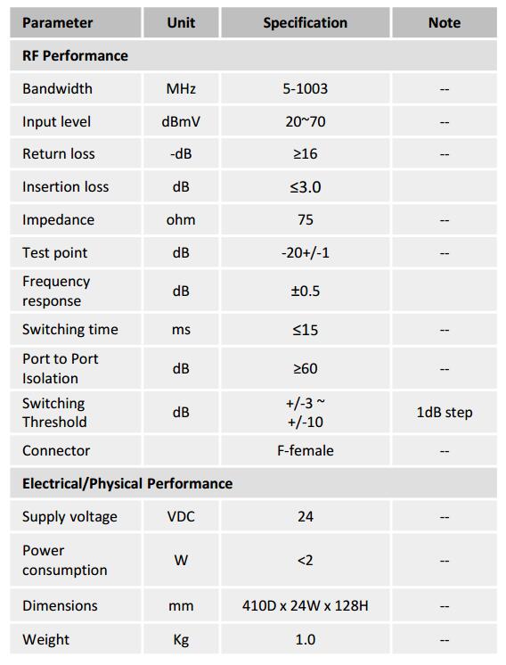 ■ Frequency range of 5 to 1003 MHz